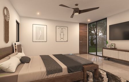 Recamara principal con closet vestidor y baño completo.