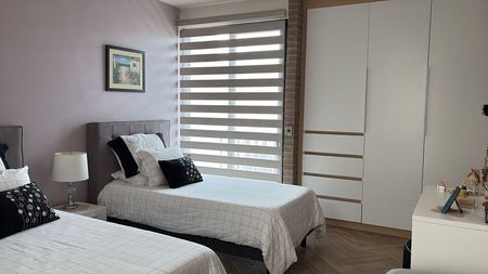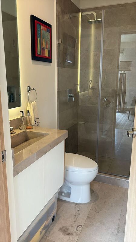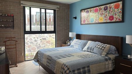 Recamara principal con vestidor, baño completo y aire acondicionado.