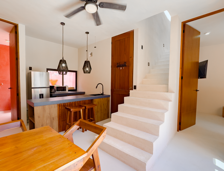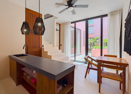 El conjunto cuenta con corredores verdes, patios internos y áreas comunes que promueven la convivencia y el sentido de comunidad, además de huertos, suelos permeables y reforestación en los alrededores para favorecer un estilo de vida más equilibrado. su ubicación estratégica en Tulúm centro lo convierte en una excelente opción tanto para vivir como para invertir en una propiedad con identidad local y proyección a futuro