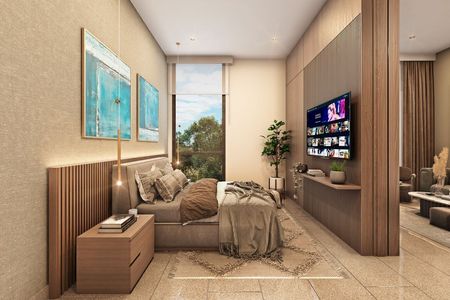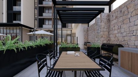 Proyecto de usos mixtos, contando con 2 bloques arquitectónicos divididos en un área de comercio junto con otra de oficinas, y la segunda parte en los departamentos residenciales conformado por 80 unidades que se encuentran a partir del nivel 6.