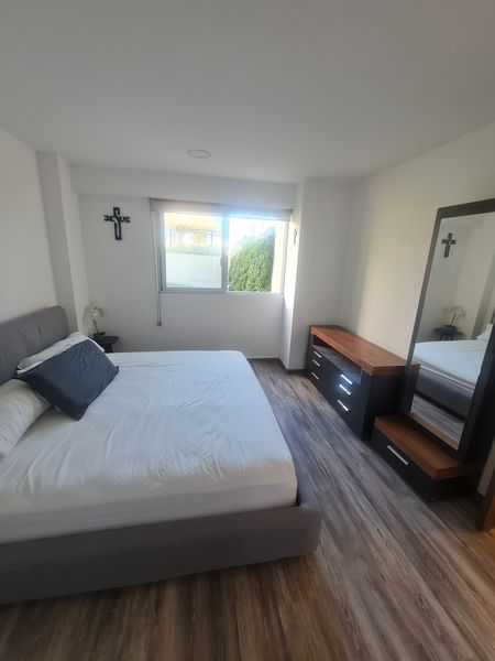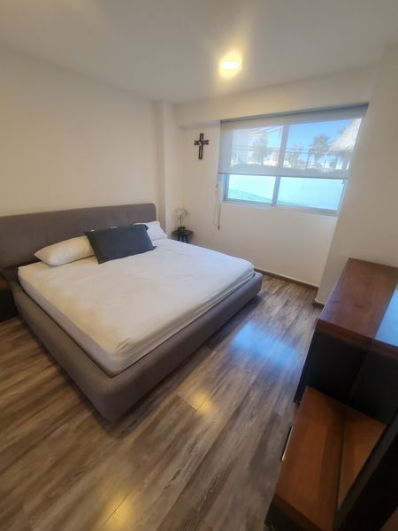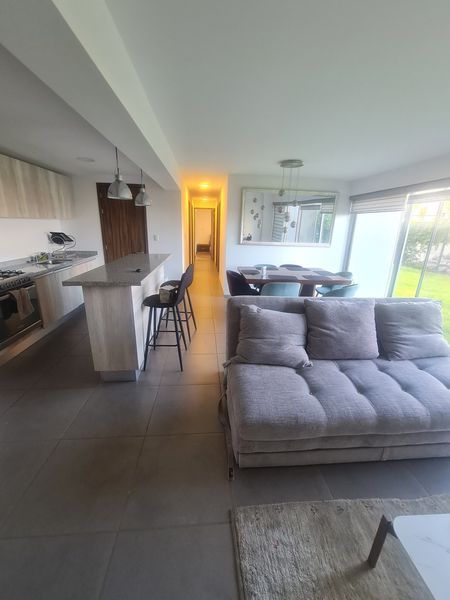 Espectacular departamento de lujo único en Querétaro, como una casa en un solo nivel. Gran jardín de 80 metros cuadrados y acceso directo a la alberca!!! No pierdas la oportunidad de conocerlo y hacer una inversión inteligente!!! para vivir cómodamente sin escalones. Cuenta con 3 amplias recámaras, gran cocina, sala y comedor iluminada y con vista a jardín de todas las áreas sociales así como de las recámaras. Cuenta con cuarto de lavado, un buen espacio de bodega, 3 baños completos, vestidor en recámara principal y closets en recámaras secundarias, 2 lugares de estacionamiento justo frente a ingreso del lobby y a unos pocos pasos de el ingreso a la propiedad. Las amenidades son un plus importante que agregar: co-working, salón de eventos, gimnasio, albercas, juegos infantiles, kid zone, canchas de futbol, pádel y basketball. Todo en la zona nueva de Querétaro. Vigilancia las 24 horas. Seguridad total garantizada. Hospital, plazas comerciales y escuelas muy cercanas a ésta zona.