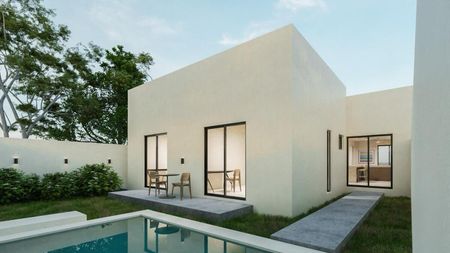 de 1 planta con amplio terreno. A solo 6 minutos del periférico de Mérida la casa esta diseñada para vivir un entorno