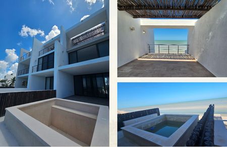 Exclusivo desarrollo frente al mar de 4 villas, ubicado en el km 22.5 de la carretera Uaymitún- Telchac Puerto, en un terreno total de 20 m de frente a playa por 40 m lineales de fondo.