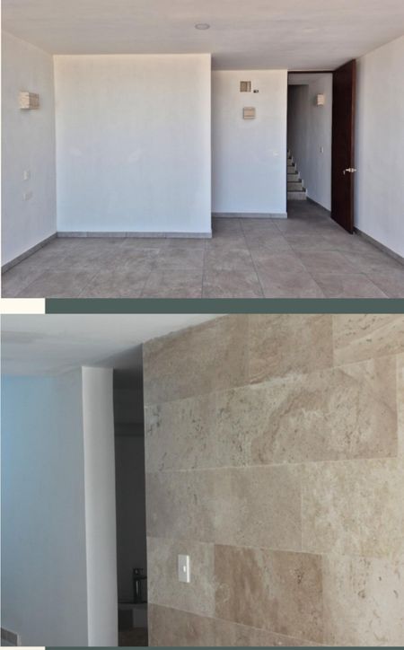 MUROS INTERIORES: Pasta acrílica lisa de 6 a 10mm de espesor sobre block, acabo final de pintura vinílica mate o semi mate en color blanco.