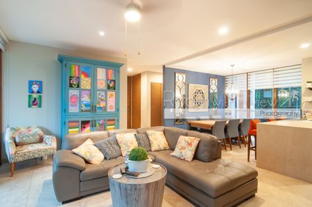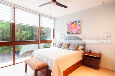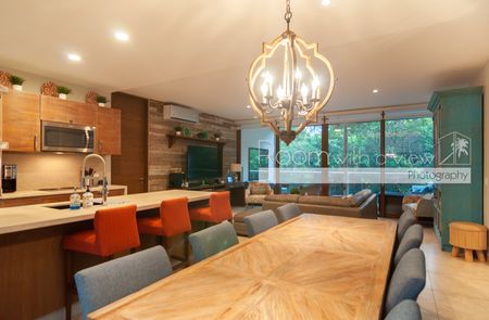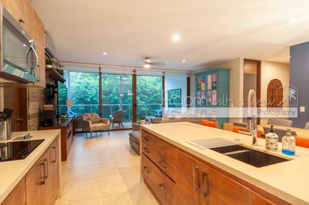 En el interior, el departamento se siente amplio e iluminoso, con una espaciosa sala y comedor, cocina con barra desayunadora y una gran terraza techada que conecta el espacio interior con el exterior. Se ofrece parcialmente amueblado, listo para que agregue su toque personal y lo haga suyo. Disfrute del acceso a dos albercas comunes (una exclusiva para adultos), gimnasio, bistró, y tarifas preferenciales en el TAO Wellness Center y el campo de golf profesional de 27 hoyos. También tendrá acceso a senderos, canchas de tenis y dos hermosos clubes de playa.