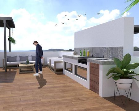 El Refugio es un conjunto residencial compuesto por 35 modernas viviendas de 124 m² distribuidas en dos niveles más roof garden.