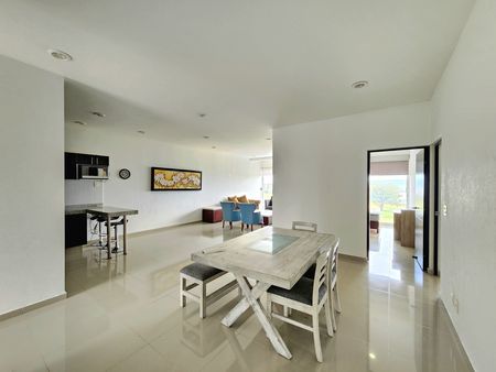 3 recámaras matrimoniales, la principal con balcón y una inigualable vista al campo de golf, 2.5 baños, 2 estacionamientos techados, cocina integral con barra desayunadora, área de lavado oculta, sala y comedor igualmente con una espectacular vista al campo de golf.