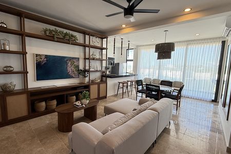 Departamento tipo estudio, cuenta con cocina integral con parrilla eléctrica, sala, comedor, closet, 1 baño completo, balcón, muebles empotrados de la mejor calidad.