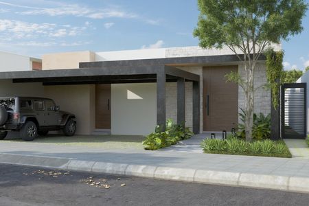 Planta Baja: Concepto abierto con recibidor, sala, comedor, cocina, antecomedor, oficina o recámara, medio baño, lavandería techada, alberca techada de doble altura con medio baño, cuarto de máquinas, área social y estacionamiento para 2 autos.