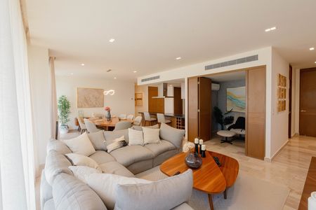 Ubicado en el piso 15 este departamento cuenta con 3 recamaras de las cuales la principal tiene working closet y baño completo, las dos recamaras posteriores cuentan con closet y baño completo, cocina equipada, área de lavado y cuarto de servicio, la sala comedor es muy amplia y con una vista espectacular hacia la cañada.